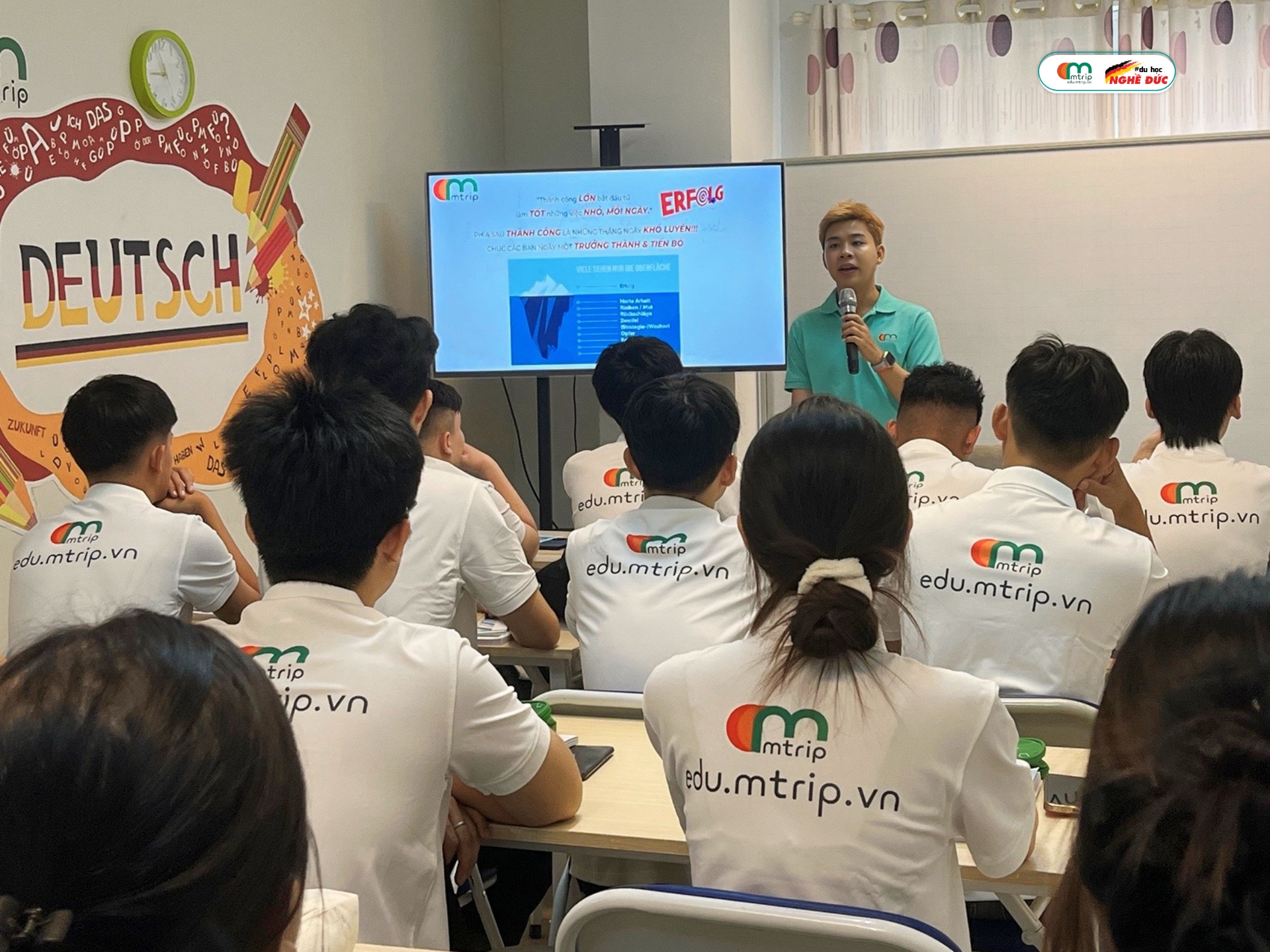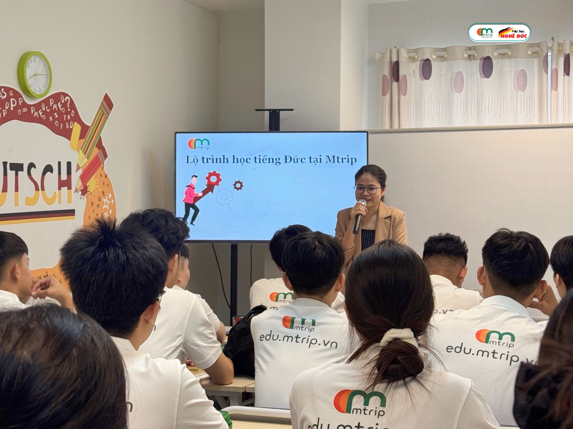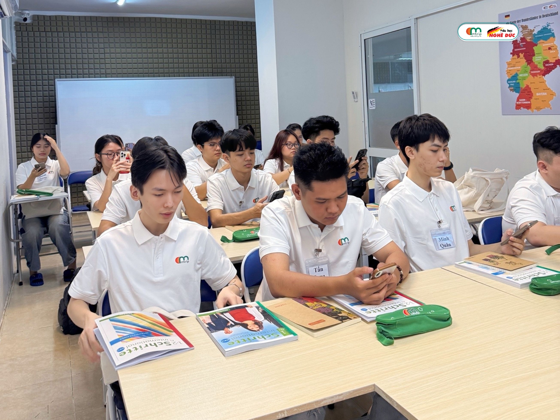 Không khí khai giảng tại Mtrip rộn ràng và đầy năng lượng, khi các học viên từ nhiều địa phương cùng quyết tâm chinh phục tiếng Đức, nhanh chóng hòa nhập thành một tập thể gắn bó, nhiệt huyết.